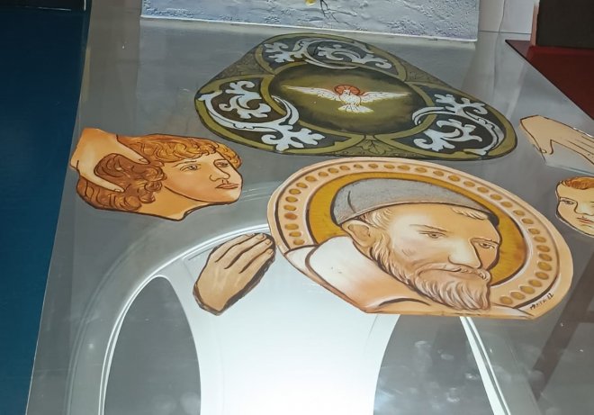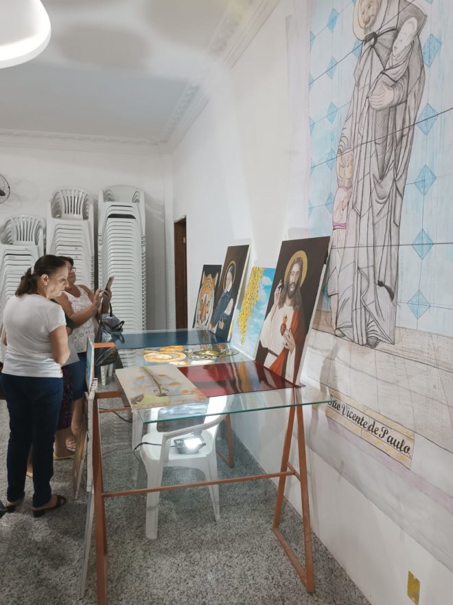Colocando seus dons artísticos a serviço da paróquia, o padre Lenilson está expondo, na entrada da igreja matriz, quadros de sua autoria que estão à venda para ajudar a compor o recurso para a parcela final da aquisição dos bancos. "É tudo a preço de banana... ouro", brinca o sacerdote. Além de vários quadros, está em exposição o que já pôde ser feito do primeiro vitral da igreja matriz, no ateliê montado para esse fim.